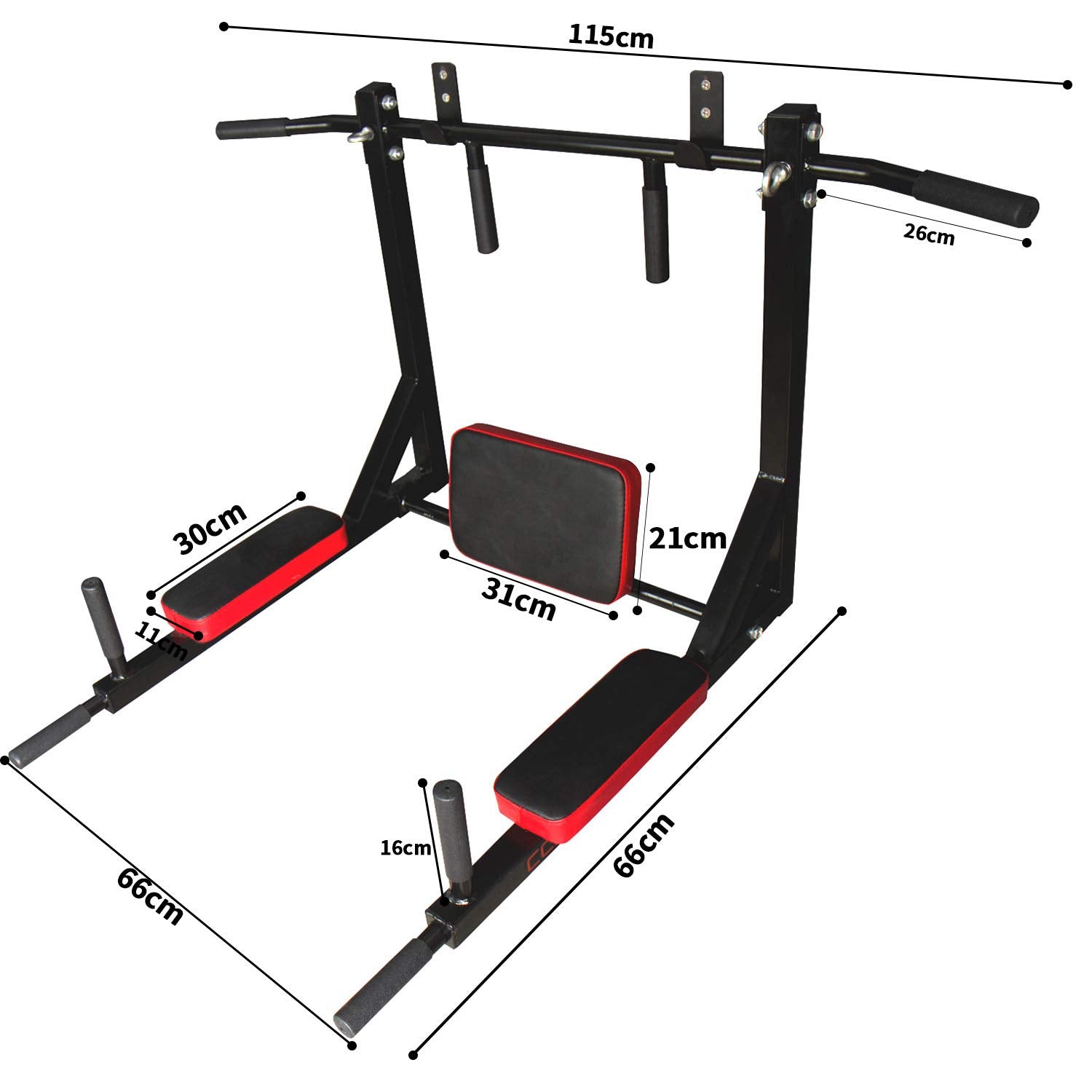 - Barra para dominadas permite realizar ejercicios como:Multigrip barra de dominadas,Mango antideslizante,Ejercicios con TRX,Ejercicios para los tríceps y el pecho,Flexiones,Abdominales y aumento de la rodilla