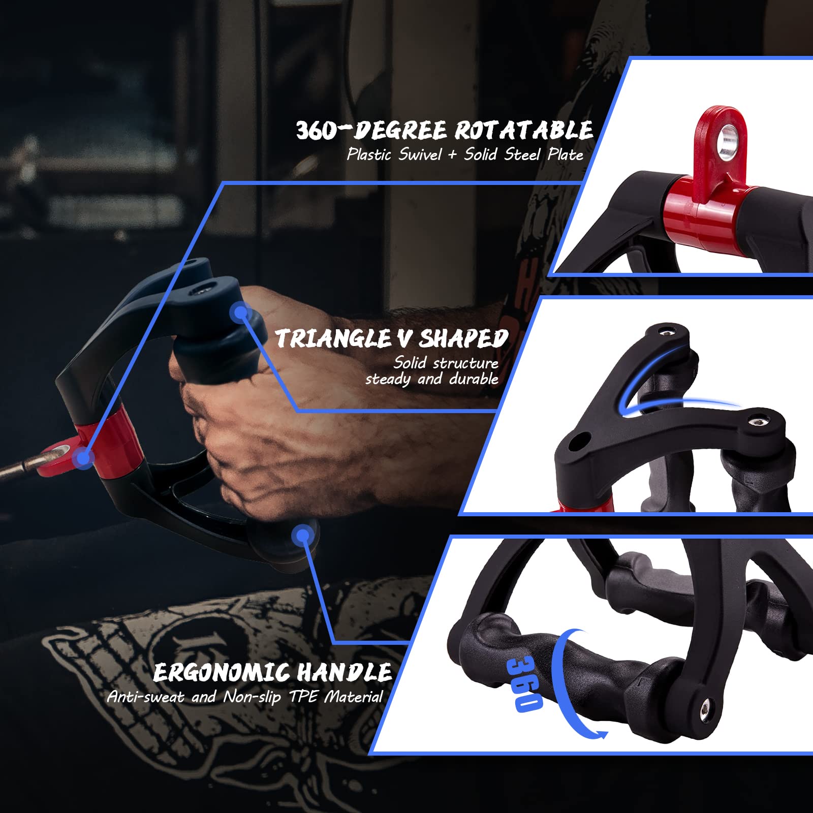 HXD-ERGO Mango de Remo Doble D, Mango Paralelo para Ejercicios de Remo clásicos, Asas de Cuerda para Fitness, bíceps y tríceps para Gimnasio en casa (Mango en Forma de V)