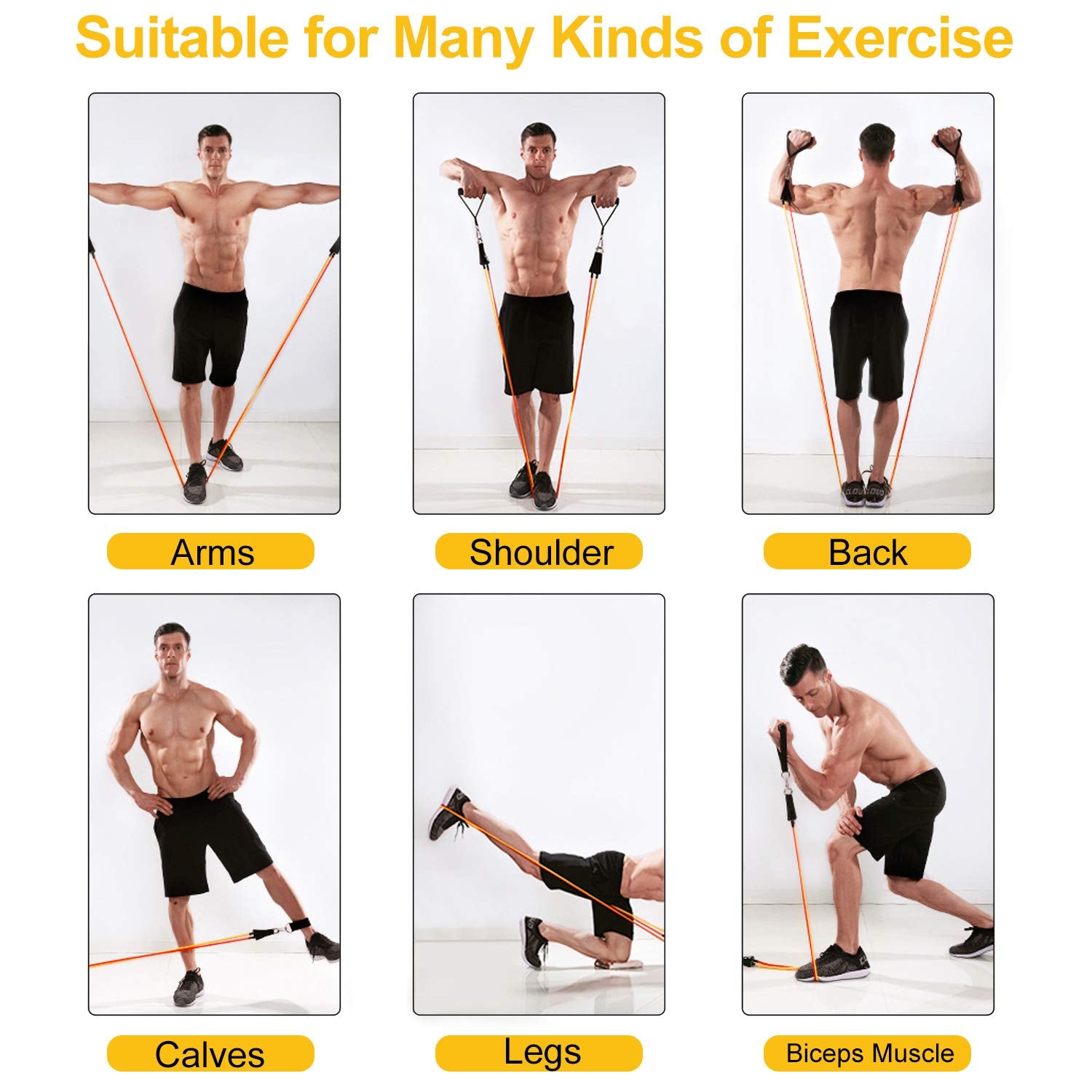 - Características Completas: el juego de bandas elásticas cuenta con un juego completo de accesorios, incluyendo 5 tubos de expansión, 2 asas, 2 correas de tobillo, 1 anclaje de puerta y una bolsa de transporte. Con la bolsa portátil puedes utilizar el expansor para entrenar en cualquier momento y en cualquier lugar. Es adecuado para familias privadas, estudios, gimnasios, gimnasios y muchas otras ocasiones