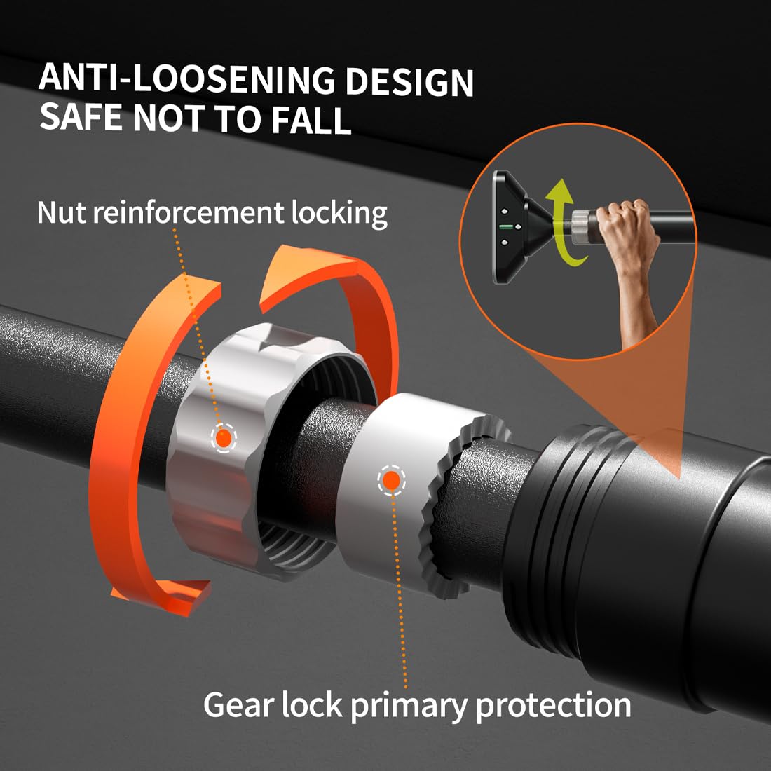- 【Easy to Install】Adjustable pull bar, no screws, no drilling installation. Simply turn the lever to lengthen it and then lock it to fix it firmly on the door frame. This pull up bar is upgraded with a safety buckle closure, which is more convenient to use