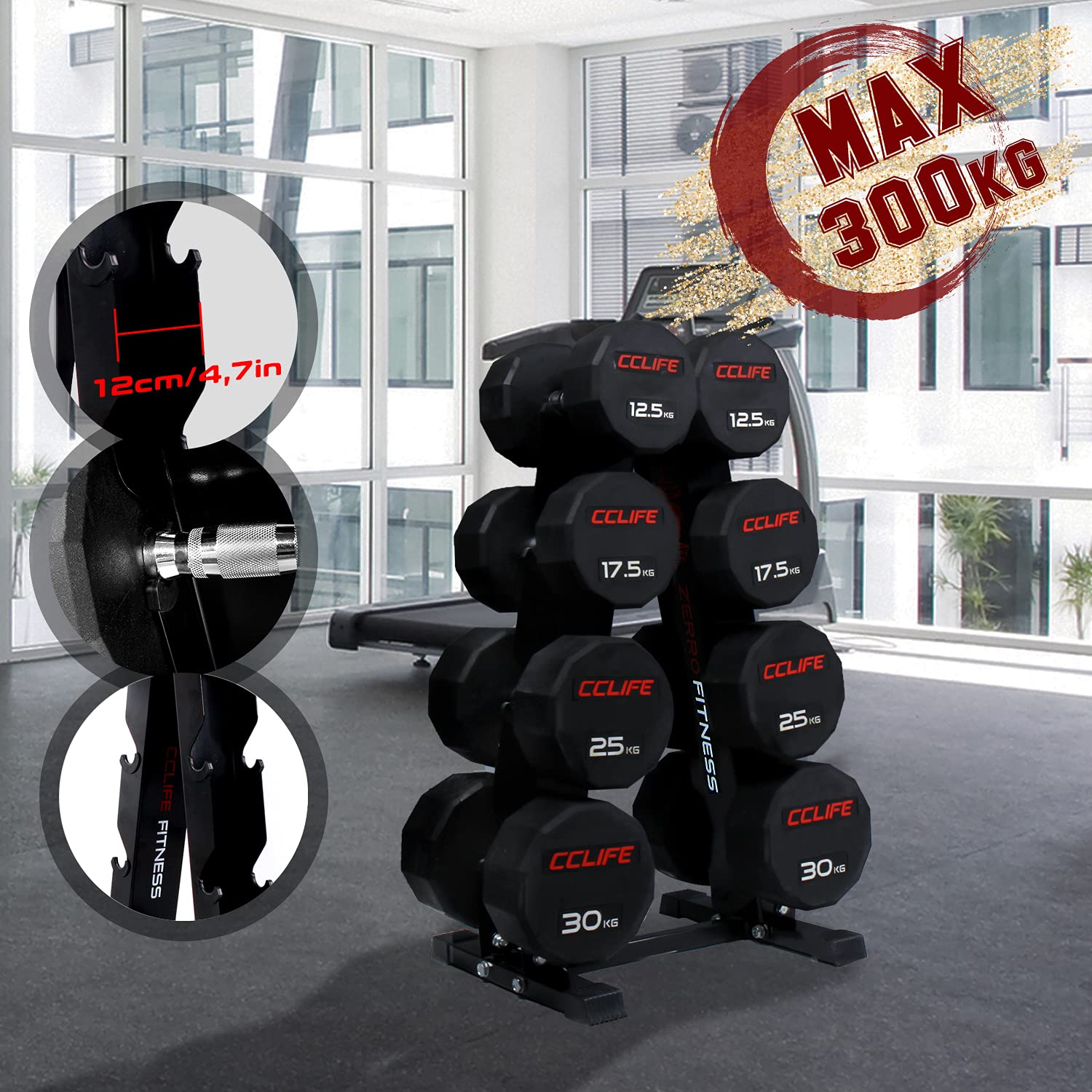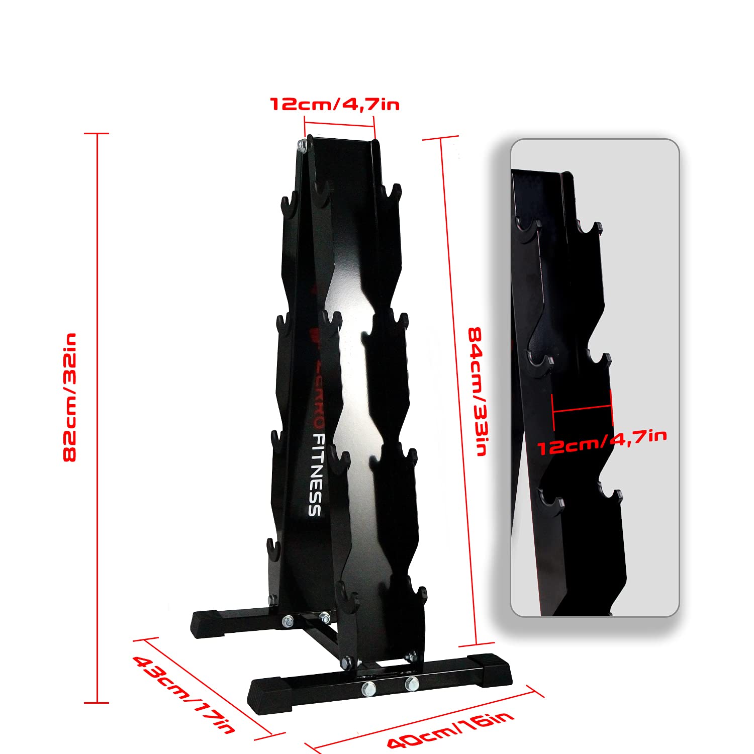 - Dimensiones (largo x ancho x alto): aprox. 40 x43 x 82 cm, peso: aprox. 10 kg, para mancuernas con un tamaño de mango de al menos 12 cm.